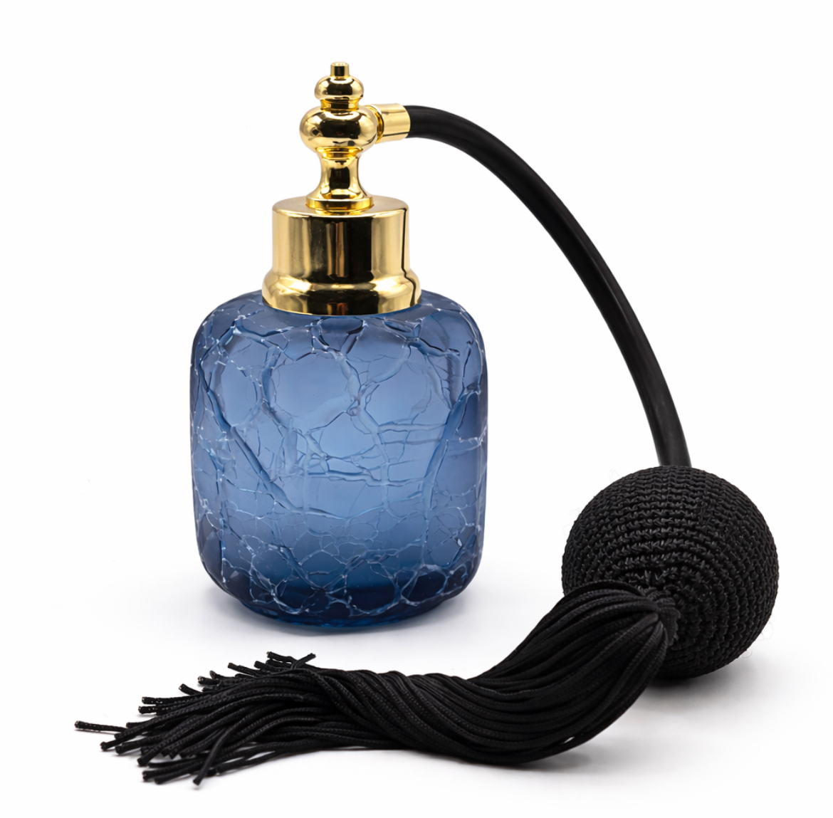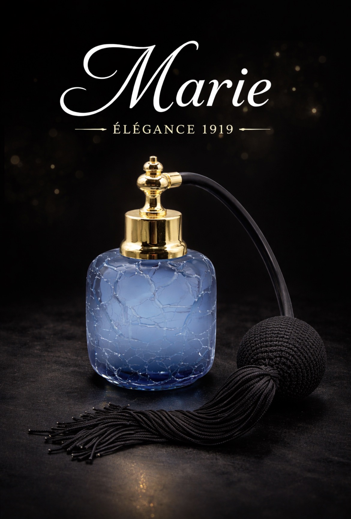 Sublimez vos fragrances avec le vaporisateur de parfum “Marie”, une pièce d’exception signée Diogène 1919 – Paris. Réalisé en verre bleu profond aux veines marbrées dorées, ce flacon allie élégance, raffinement et savoir-faire artisanal français. Sa poire noire tressée, associée à une monture dorée brillante, garantit une diffusion fine et luxueuse de votre parfum préféré.